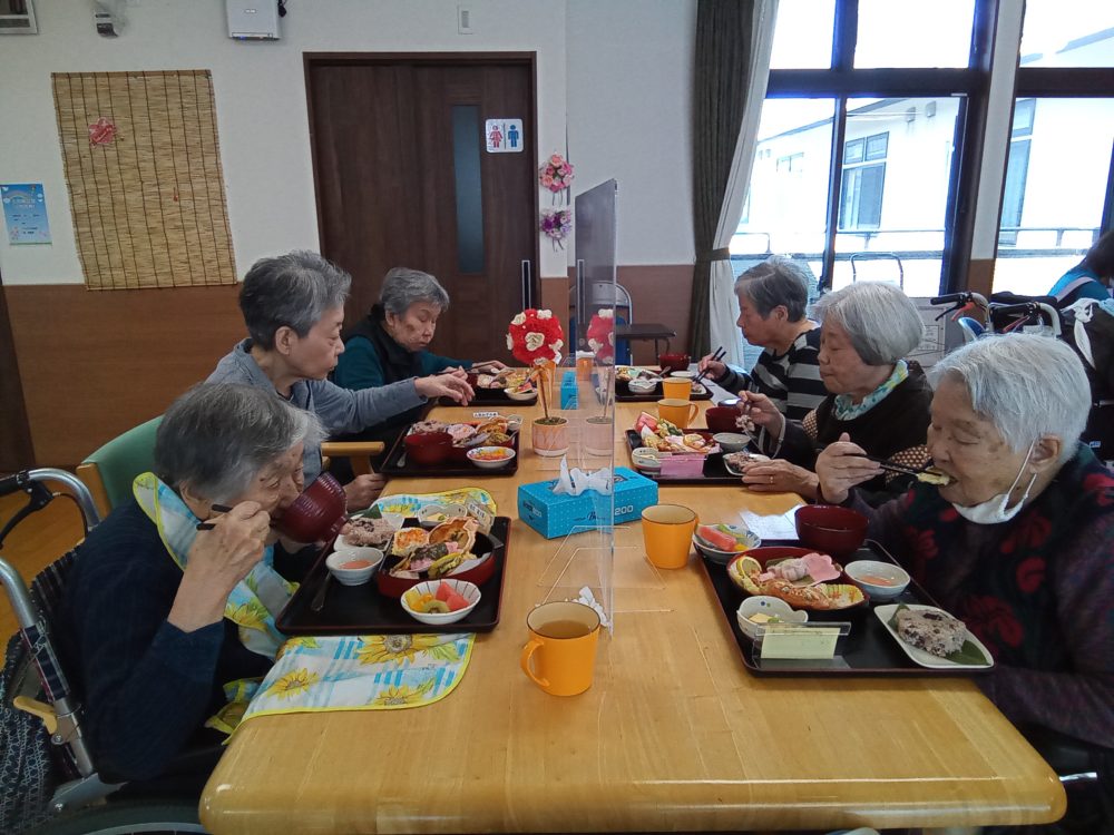 2階入居者様の食事風景です。豪華で美味しかったと好評でした。