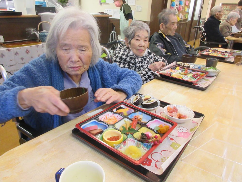 お正月は厨房職員お手製のおせち料理です。