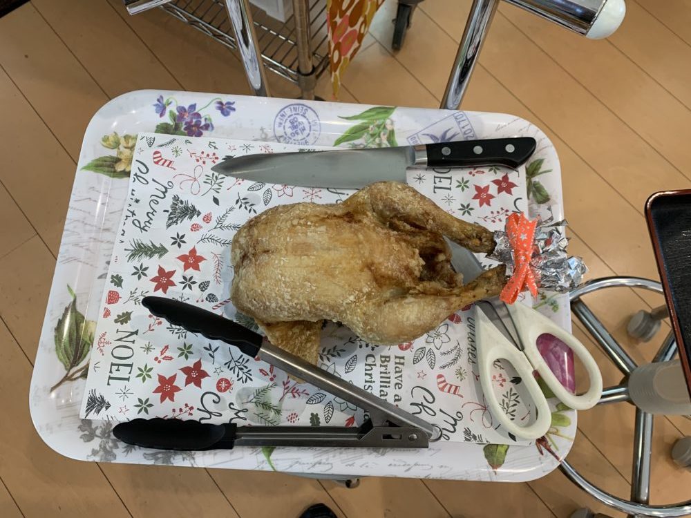 12月12日。クリスマス会を行いました。 子供たちの前では、皆様笑顔全開。 普段見られないような?素敵な笑顔です。 その後、雪合戦ならぬ、風船合戦。風船は全部で100個あります。膨らませるの1時間以上かかりました。 ひとしきり動いたところで、例のアレが入場。しかも2羽!その場でさばいてご提供。お召し上がれ。クリスマスプレゼントもありました。