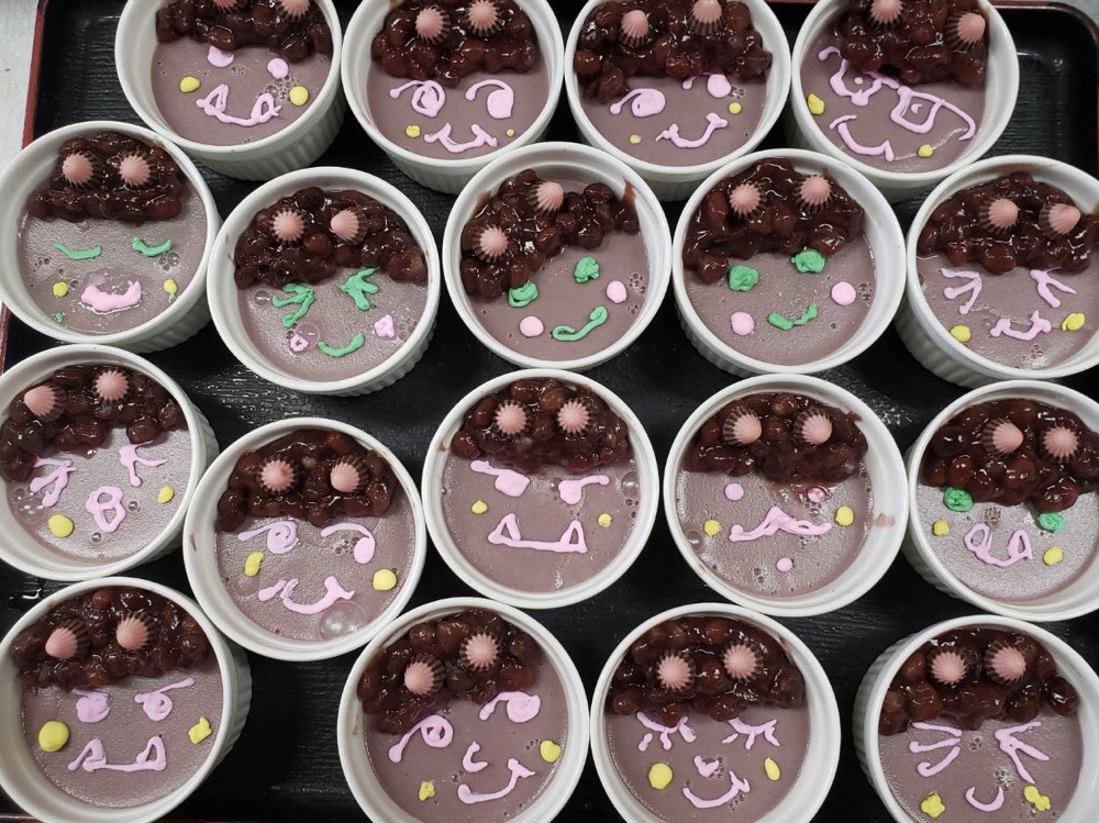 あずきプリンは、ひとつひとつ表情の違う鬼で可愛らしく配膳してすぐに話題になり皆さま喜ばれてました♡