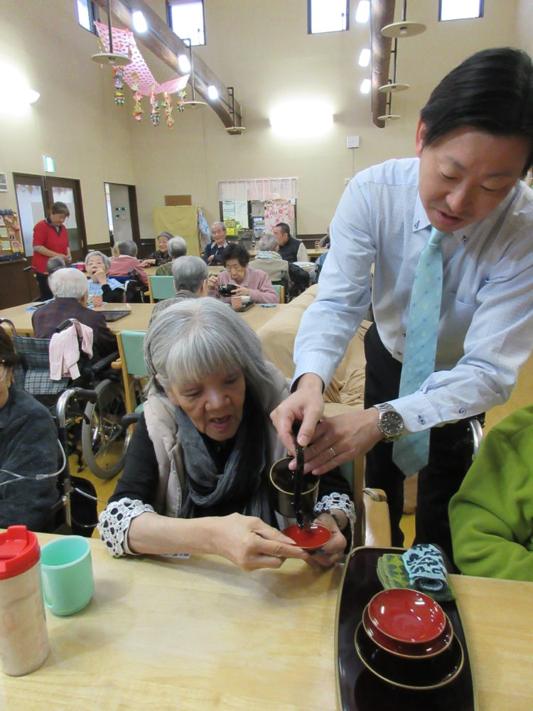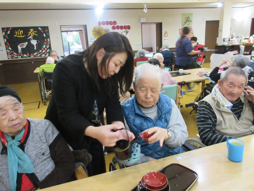 副施設長も新年のご挨拶方々、お屠蘇 をお酌させていただきます。