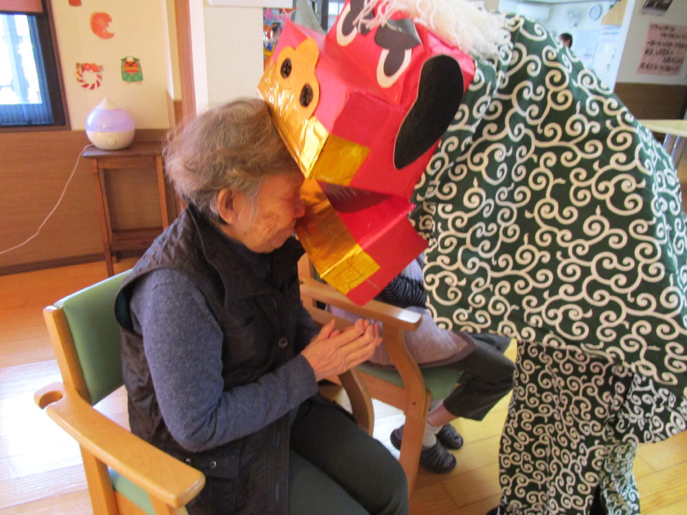 2階の皆様にも無病息災を願い、健康を願いながら獅子舞に噛んでもらいました。