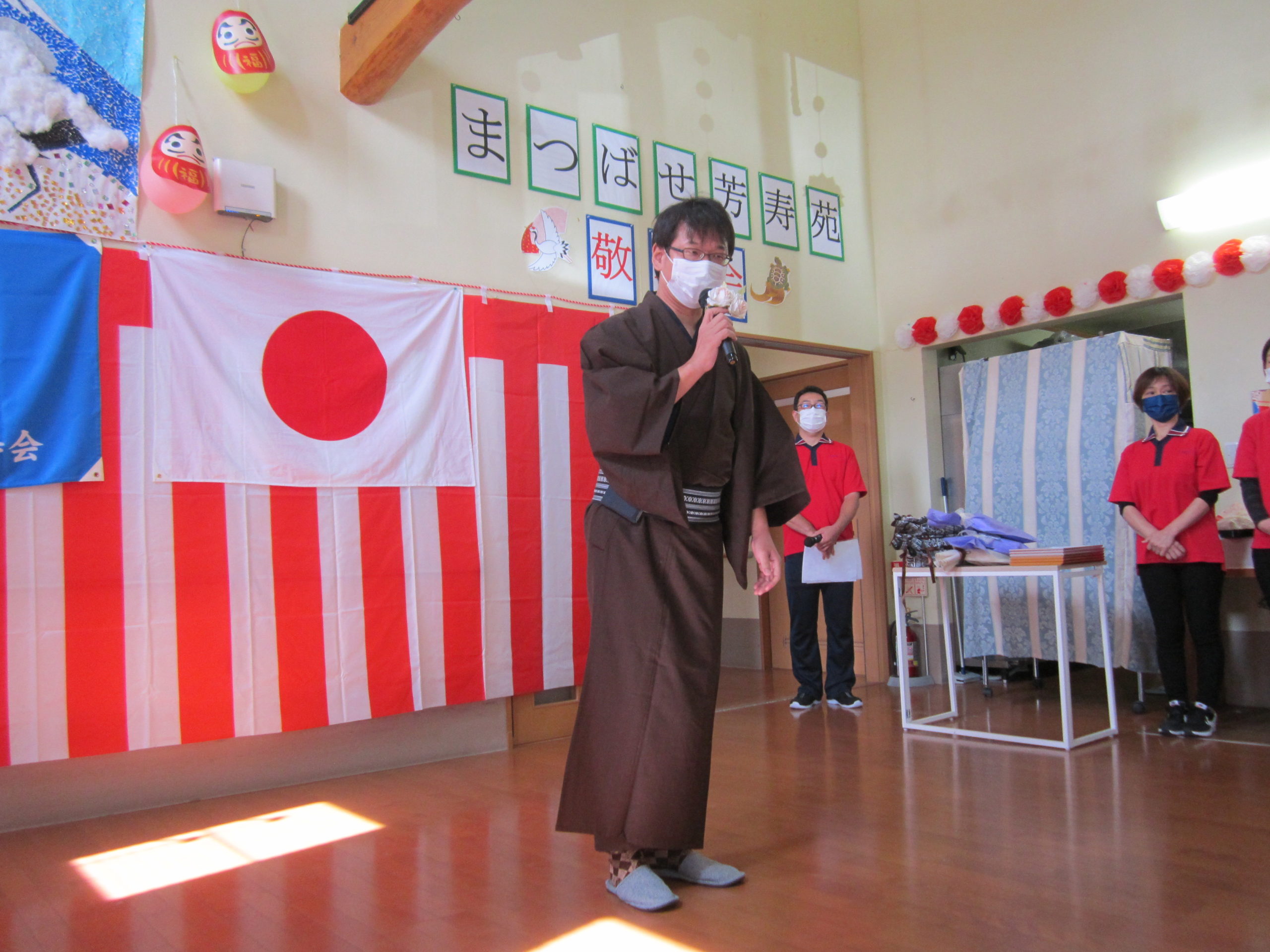 その後は、施設長より入居者様全員へのお礼の言葉を贈らせていただき、敬老会の式典は終了です。^^