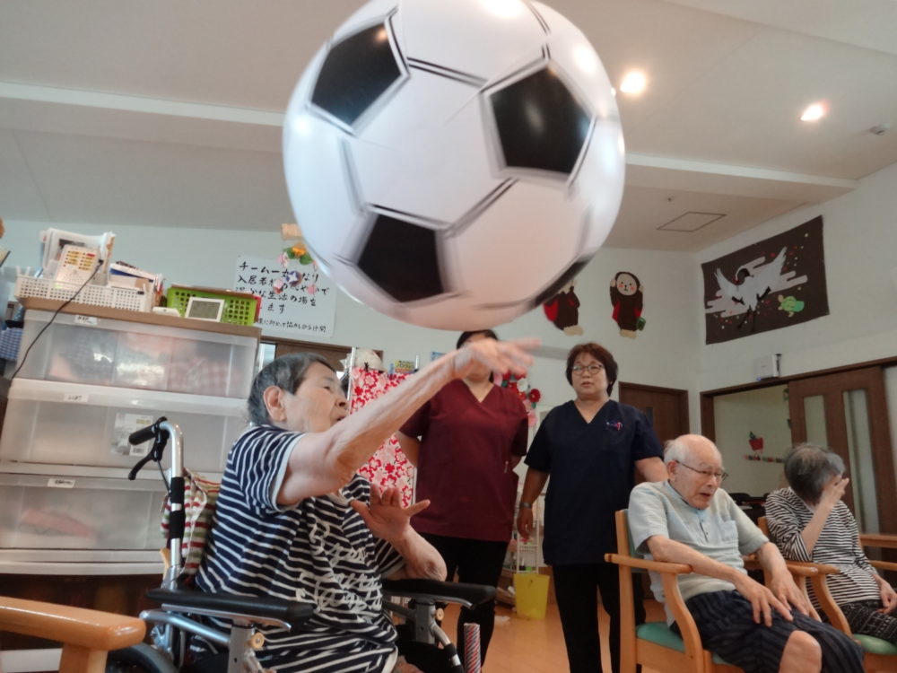 今回のイベントは、もうすぐ夏なので、直径90cmの巨大スイカと巨大サッカーボールを使ってみました。