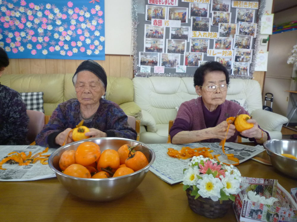 包丁持つ手もしっかりされていて 次から次に柿を剥いていかれます