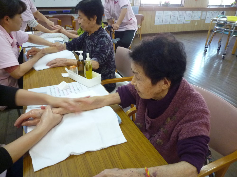 朝晩の冷え込みが厳しくなってきましたが、体調など崩されていませんか?インフルエンザもチラホラ出ているとの事なので、今月は皆さんにリラックスしていただこうと、オイルマッサージを行いました