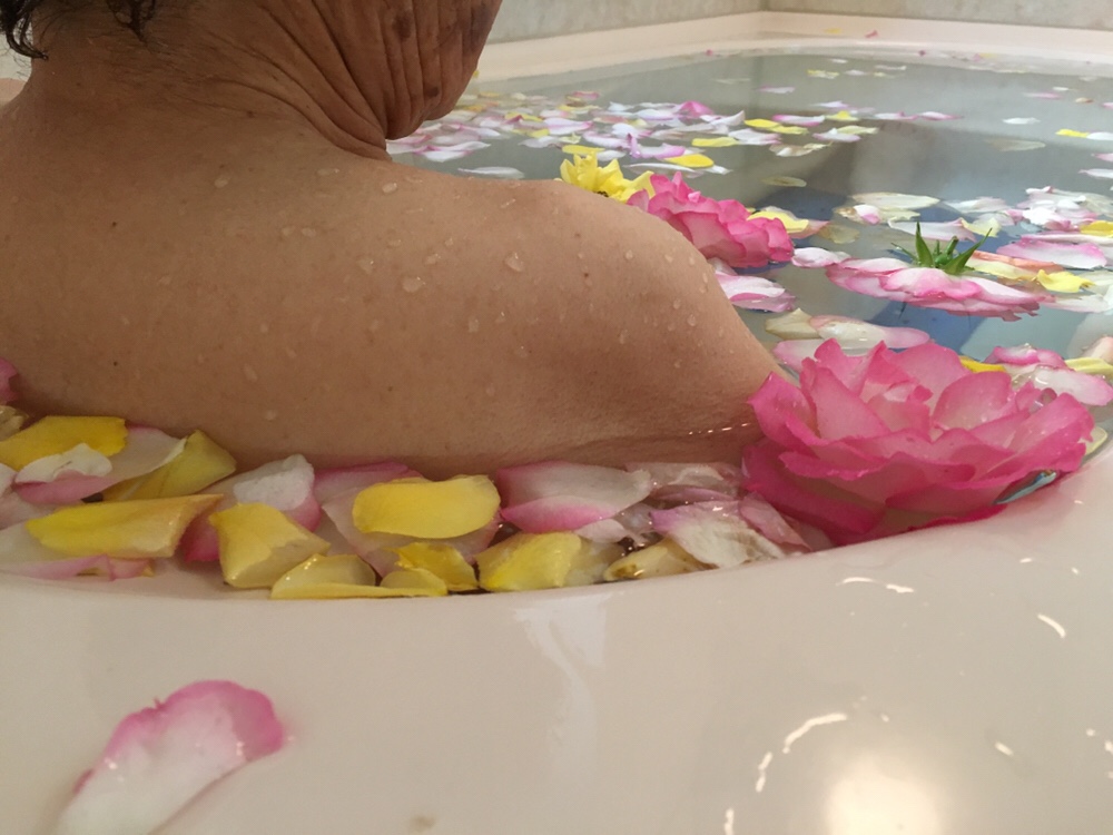 入浴では、綺麗なバラ風呂