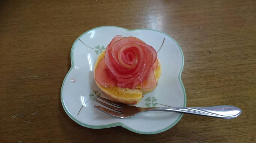 おやつは、厨房の方が腕によりをかけて「バラのロールケーキ」
