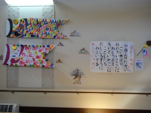 壁には入居者様と一緒に作った鯉のぼりも飾りました。