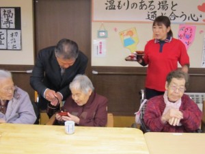 施設長より新年のご挨拶と共に入居者様にお屠蘇を